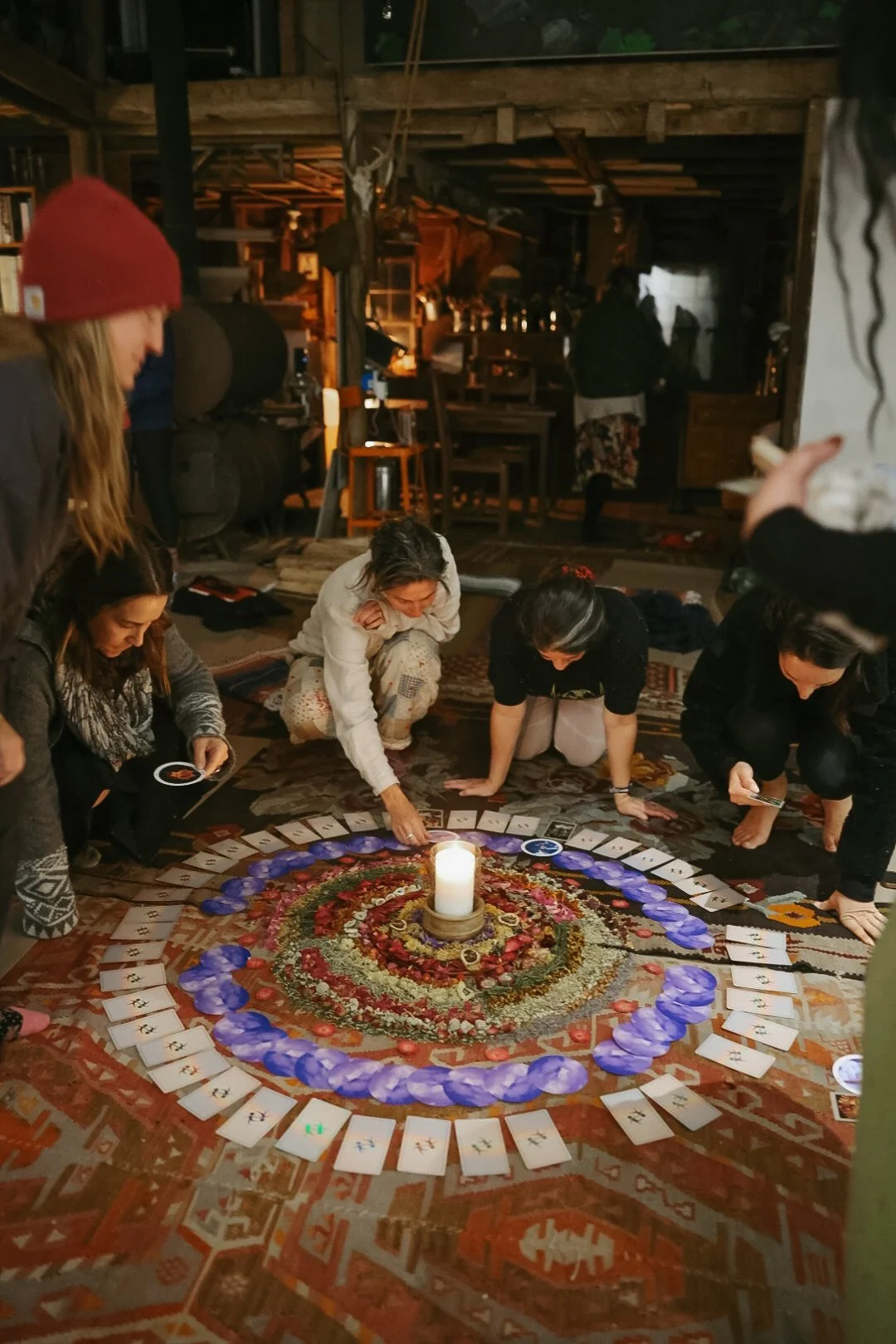 All programming (yoga, energy work, sound healing, breathwork, cacao ceremony, circles)